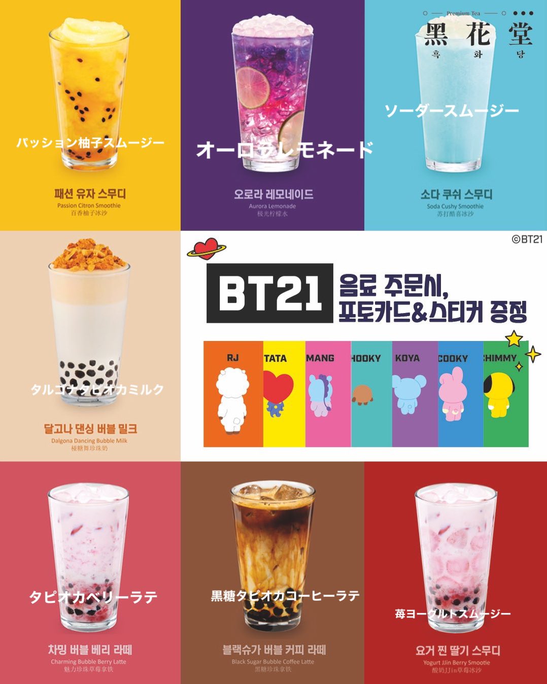 黒花堂 メニュー 新大久保-マクドナルドより、ほうじ茶を使用した秋の期間限定スイーツ登場 FOOD ・ August22電話番号: 営業時間:9:00~23:30 年中無休 ARMY必見! BT21のトゥンカロン「黒花堂(フッカダン)」 「黒花堂(フッカダン)」 こちらは韓国で人気の「黒糖タピオカミ